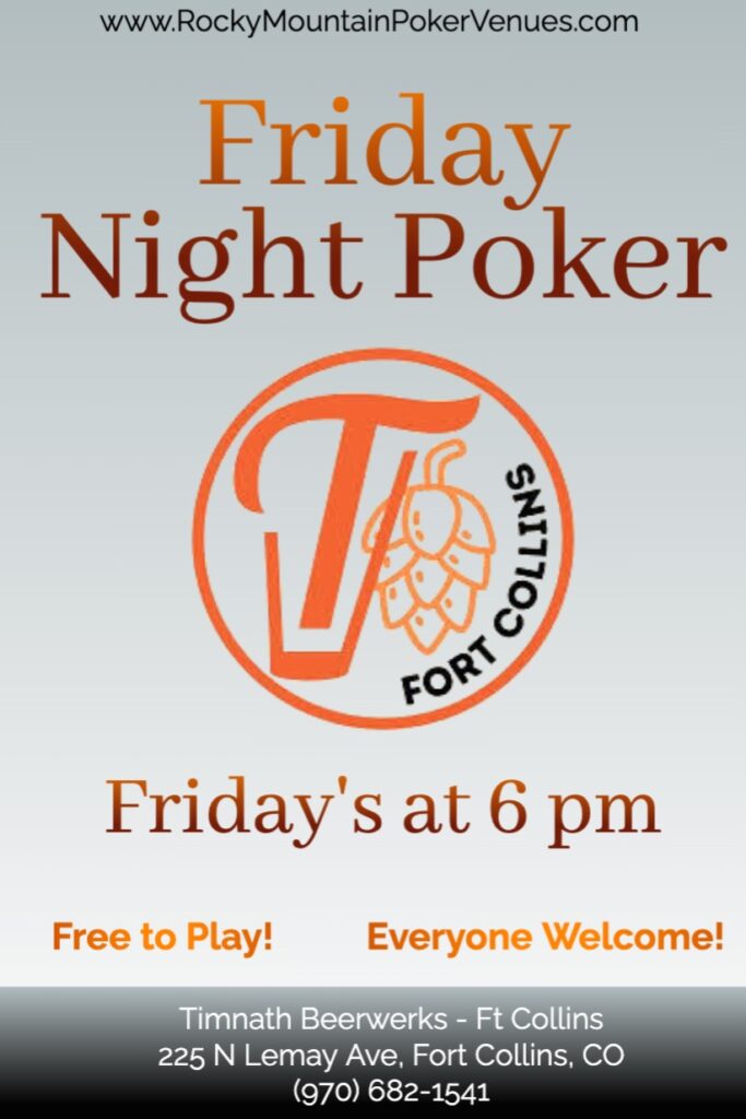 Timnath Beerwerks located at 225 N Lemay Ave #1, Fort Collins, CO 80524 hosts FREE bar poker every Friday at 6 pm. Win bar tabs and other prizes. Call 970-682-1541 for more information.